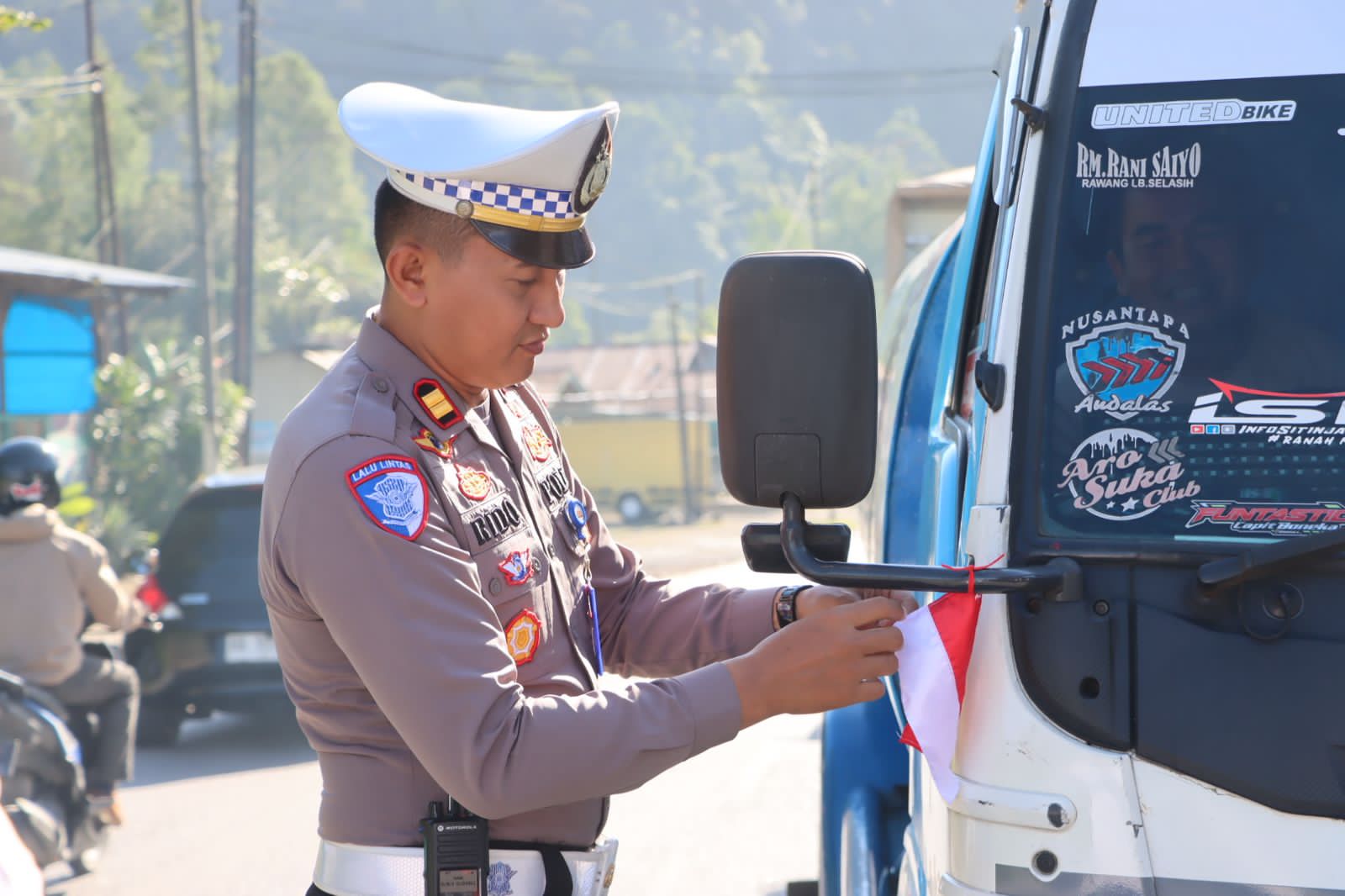 Sebagai bentuk partisipasi aktif dalam perayaan kemerdekaan, selain menghimbau masyarakat kabupaten Solok untuk mengibarkan bendera Merah Putih , polres Solok melalui sat lantas polres Solok juga membagikan bandara merah putih secara gratis kepada pengendara atau masyarakat pengguna jalan yang melintas di jalan lintas Sumatera Solok Padang.