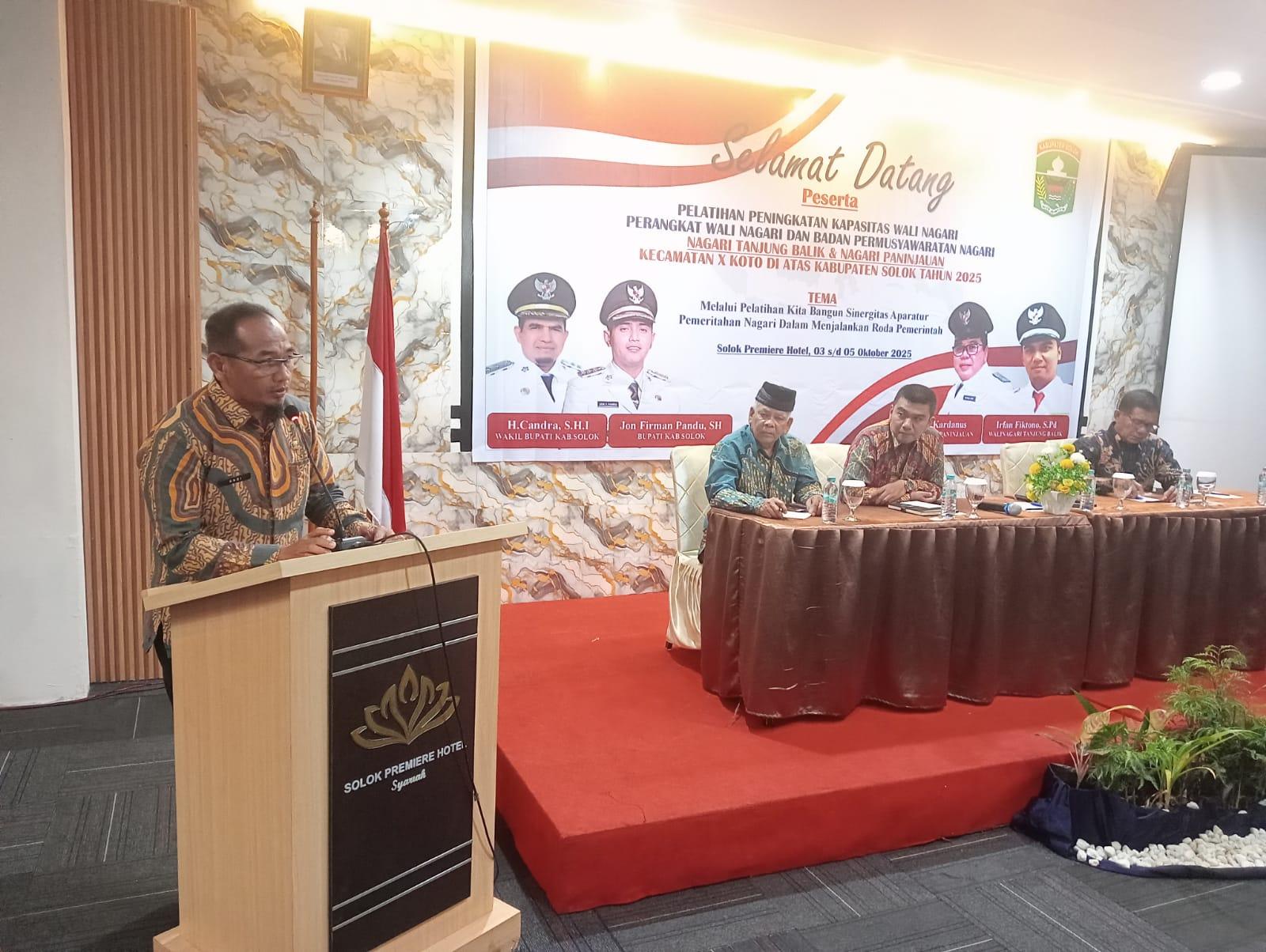 “Pelatihan ini menghadirkan narasumber dari berbagai unsur, di antaranya Camat X Koto di Atas, Kejaksaan Negeri Solok, Polres Kota Solok, Dinas Pemberdayaan Masyarakat Nagari (DPMN), Inspektorat, serta Tenaga Ahli Pendamping Desa,” ujar Irvan.