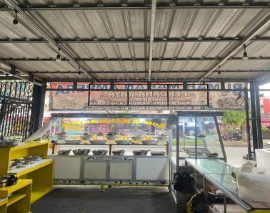 Tempat penyajian makanan di Rumah Makan Ampera Perdana Jaya yang menunjukkan variasi menu yang tersedia.