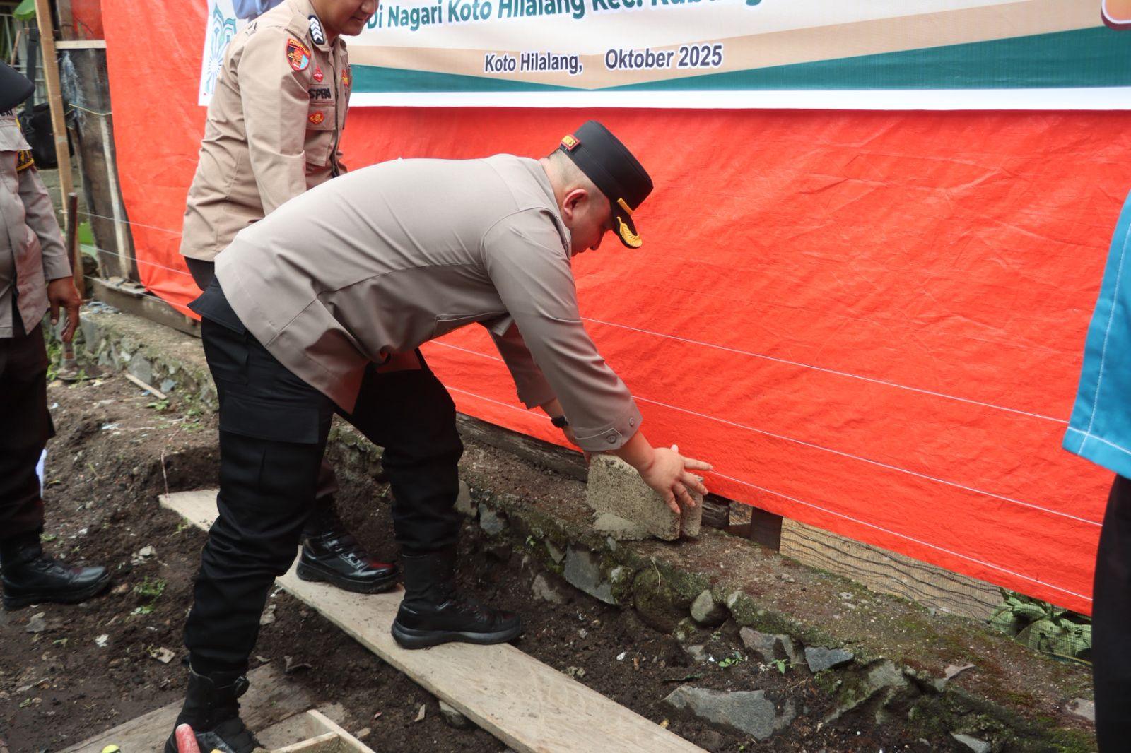 KABAMINANG.com, Solok, 16 Oktober 2025 – Kapolres Solok, AKBP Agung Pranajaya, S.I.K., secara simbolis meletakkan batu pertama dalam program bedah rumah tidak layak huni milik warga kurang mampu, Gusti Ayu (52), di Nagari Koto Hilalang, Kecamatan Kubung, Kabupaten Solok, Kamis (16/10).