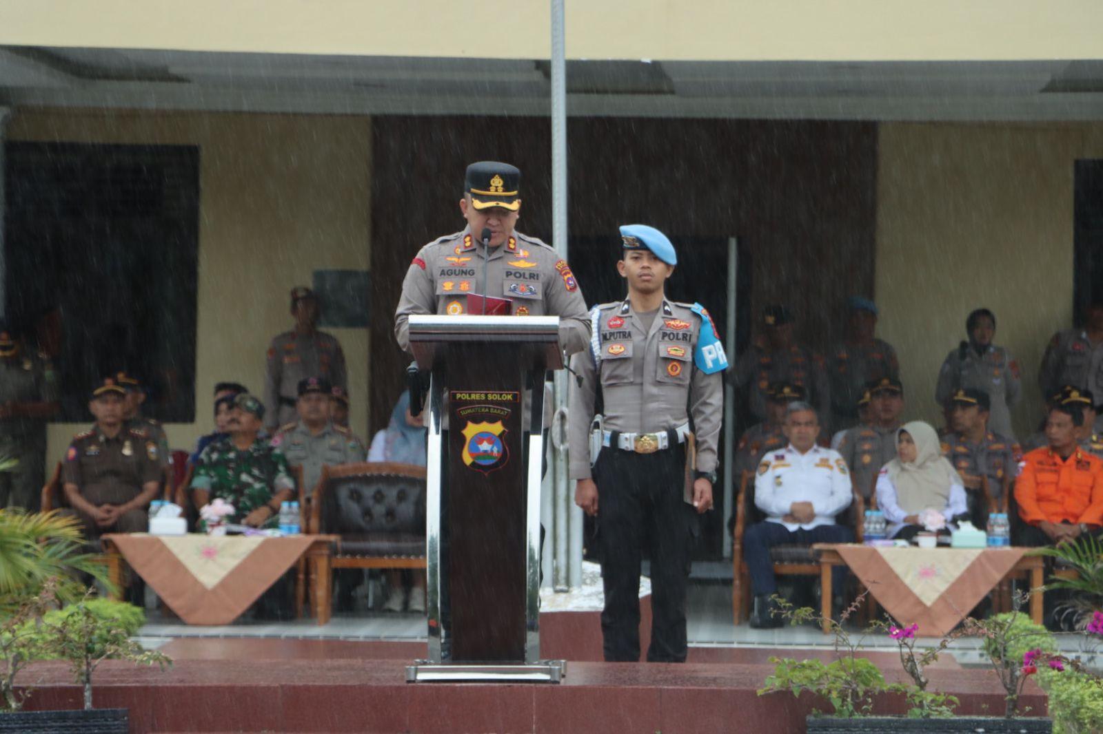 Kapolres Solok dalam amanatnya menyampaikan bahwa kesiapsiagaan menjadi kunci utama dalam mitigasi bencana. Ia menekankan pentingnya koordinasi yang sinergis antara Polri, TNI, pemerintah daerah, dan seluruh unsur penanggulangan bencana. “Dengan kesiapsiagaan yang baik, kita dapat merespons cepat setiap kejadian, meminimalkan risiko kerugian, dan menjaga keselamatan masyarakat,” tegas AKBP Agung Pranajaya.