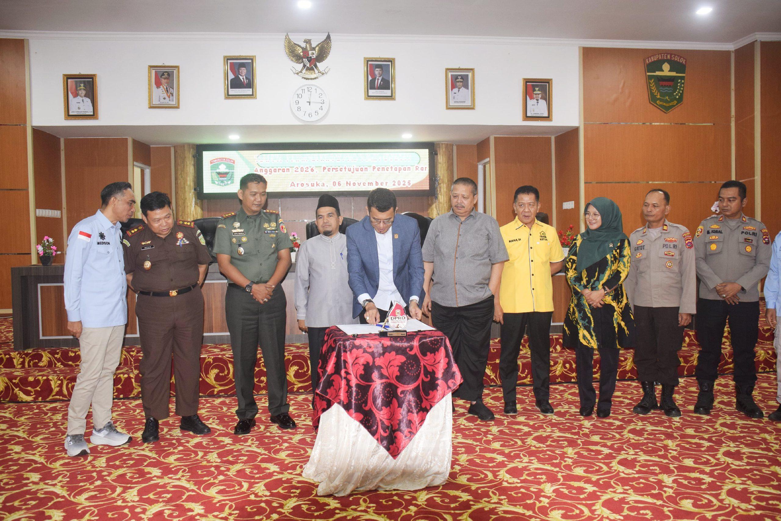 “Kami mengucapkan terima kasih kepada seluruh pihak yang telah bekerja keras, serta memohon maaf apabila dalam proses ini terdapat kekurangan. Semoga APBD 2026 dapat menjadi instrumen pembangunan yang membawa kemajuan bagi Kabupaten Solok,” tutur Ivoni.