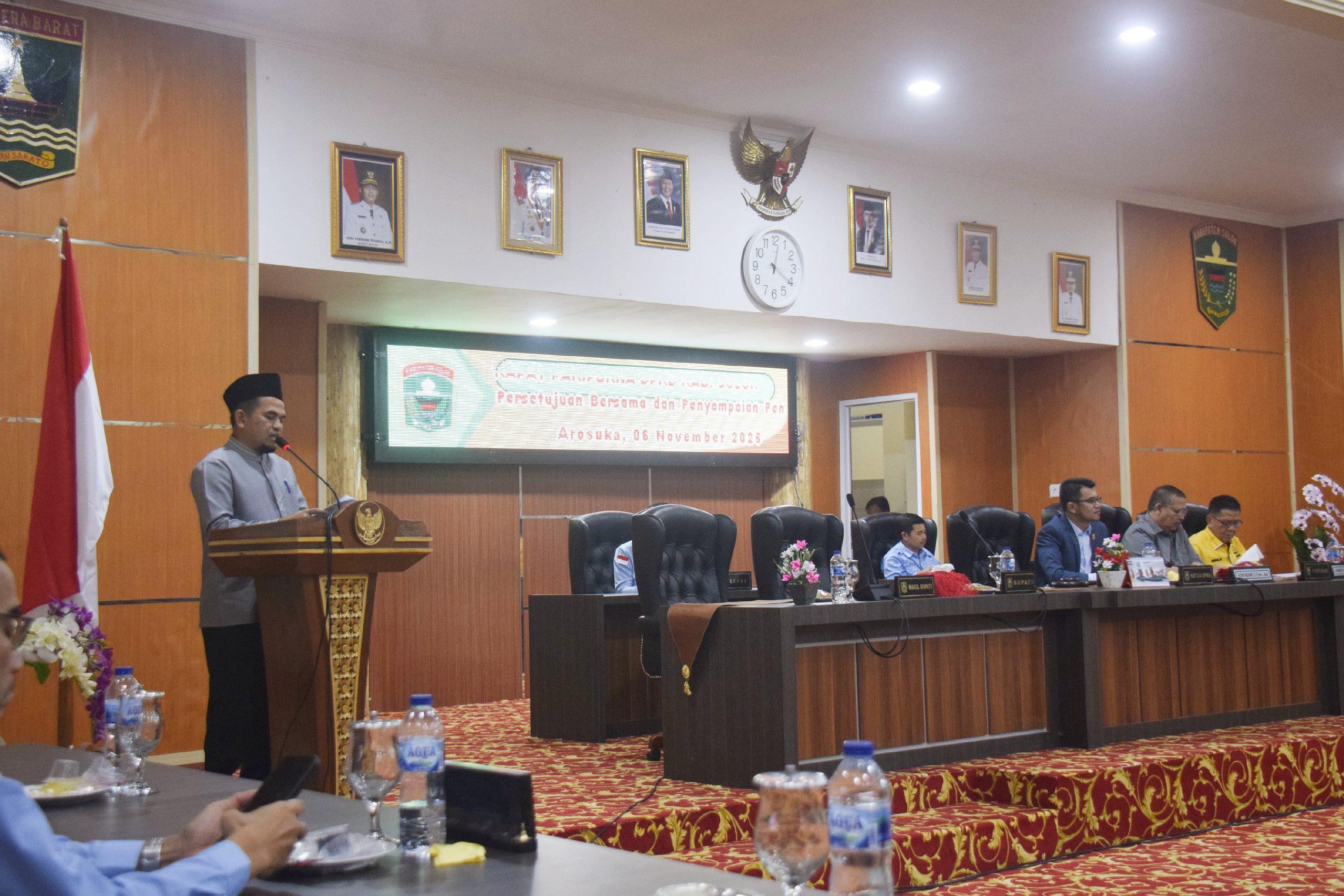 Dalam penyampaian pendapat akhir Pemerintah Daerah, Wakil Bupati Solok, H. Candra, S.H.I., menyampaikan apresiasi dan penghargaan kepada seluruh pimpinan dan anggota DPRD serta TAPD yang telah membahas RAPBD 2026 secara cermat dan penuh dedikasi.
